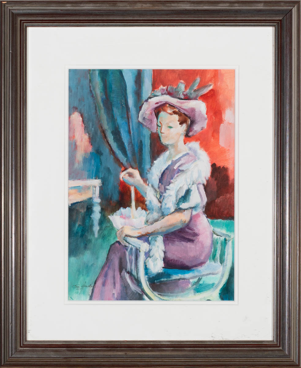 Hefðarfrú - Akrýl - Merkt. 34 x 24 cm