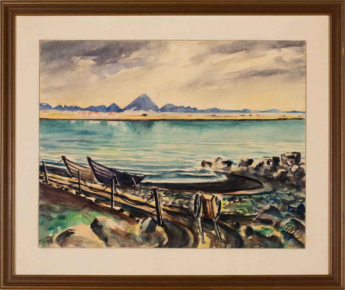 Bátur og Keilir - Vatnslitir - 1958. Merkt. 39 x 51 cm