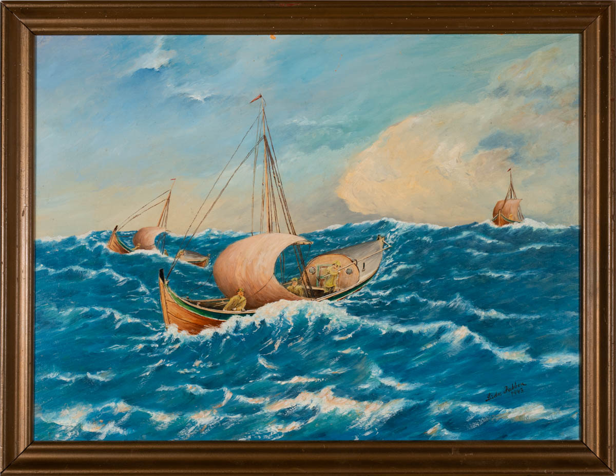 Sjómenn - Erlent - Olía - 1943. Merkt. 39 x 52 cm