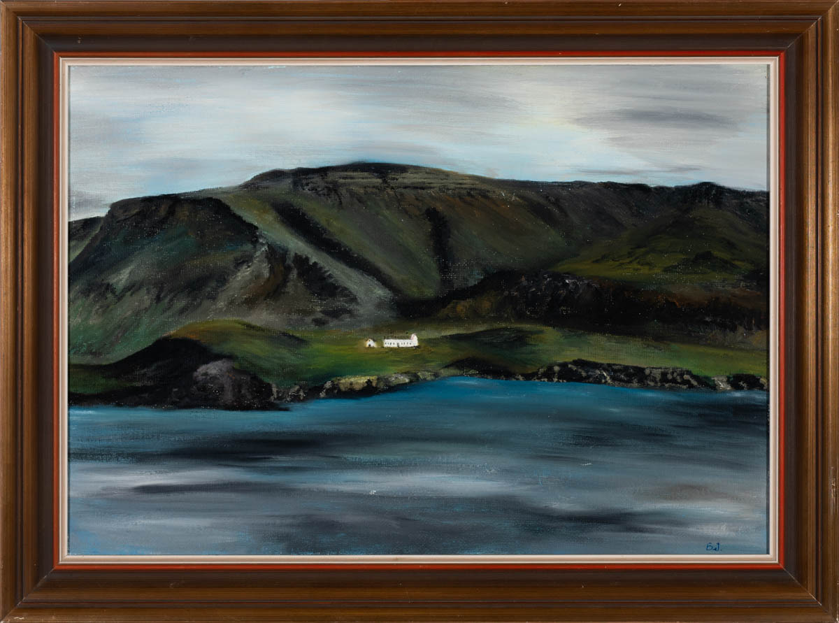 Viðey - merkt B.J. - Olía - Merkt. 45 x 65 cm