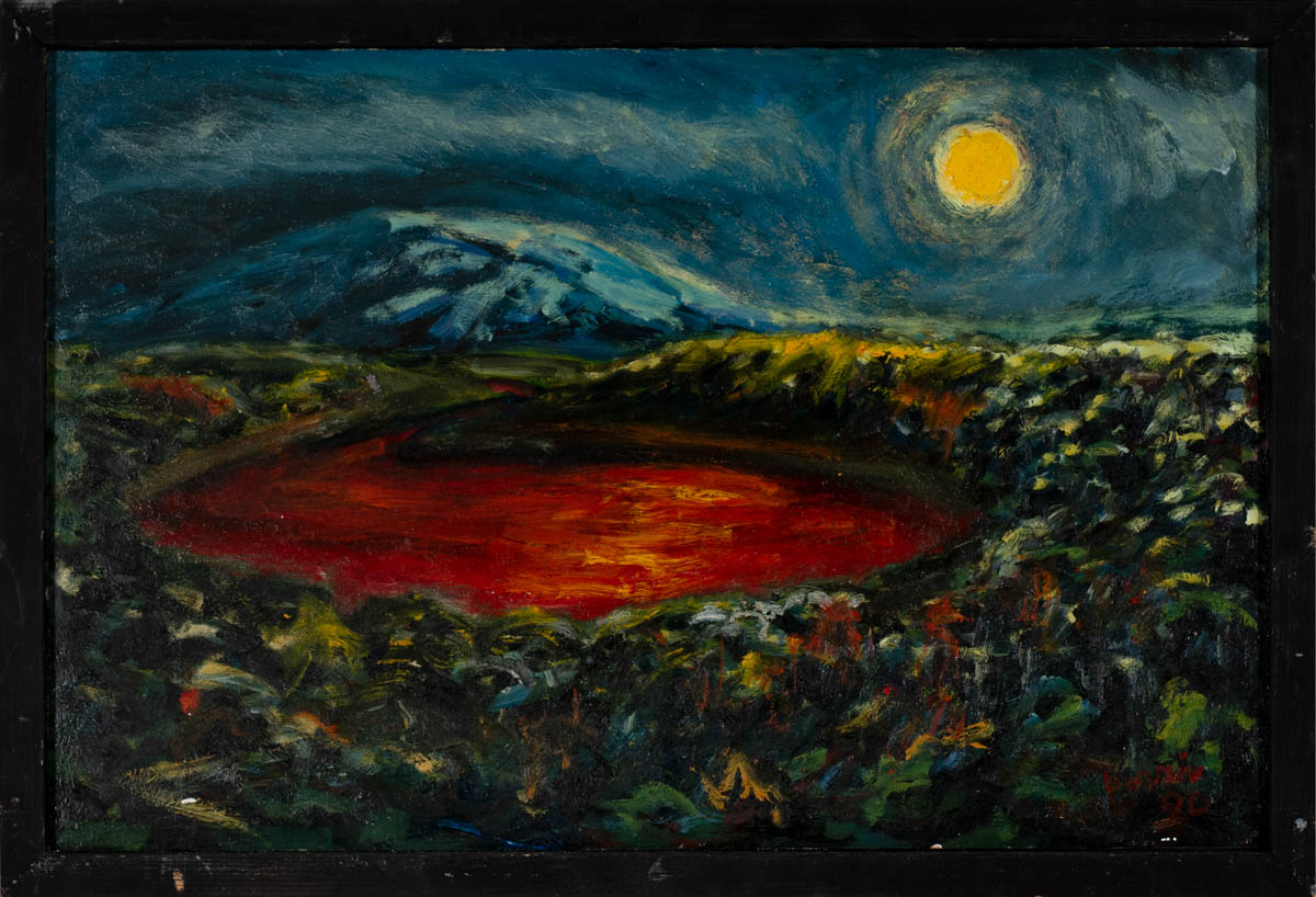Rauð lind og djúp - merkt Þórir - Olía - 1990. Merkt. 30 x 47 cm