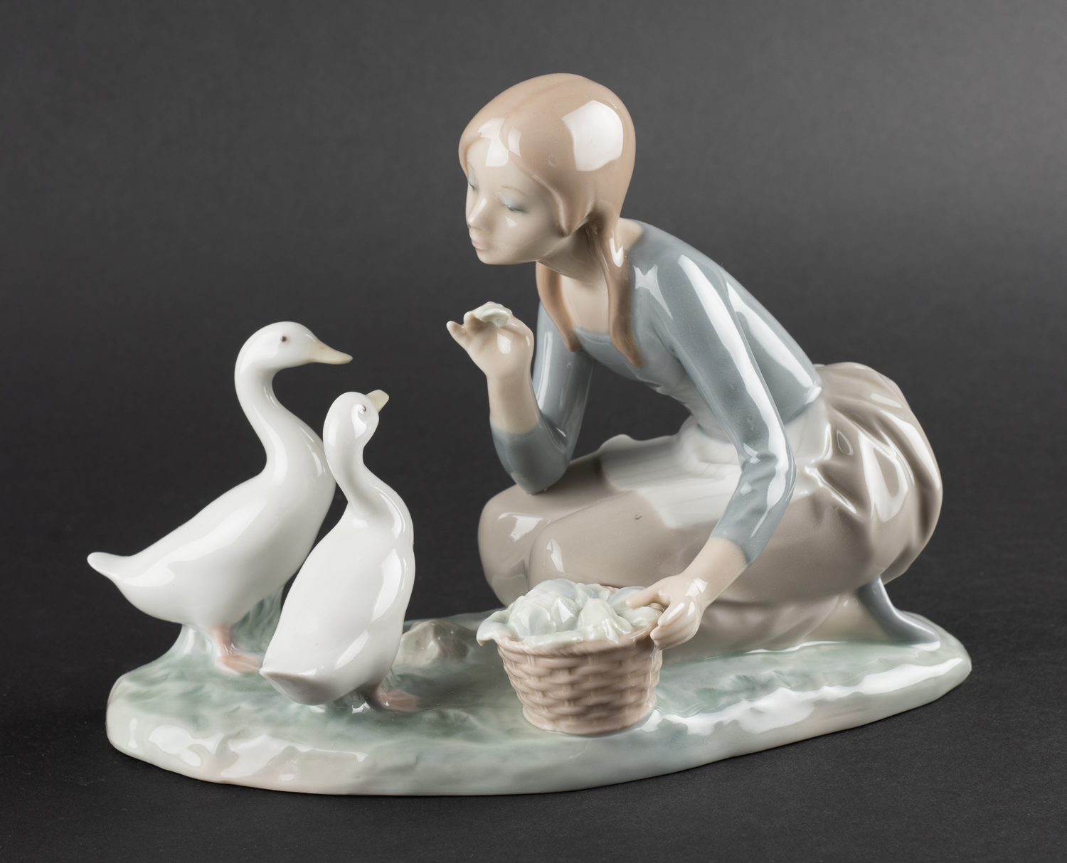 Stúlka gefur öndum - Postulín - Merkt. 17 x 22 cm