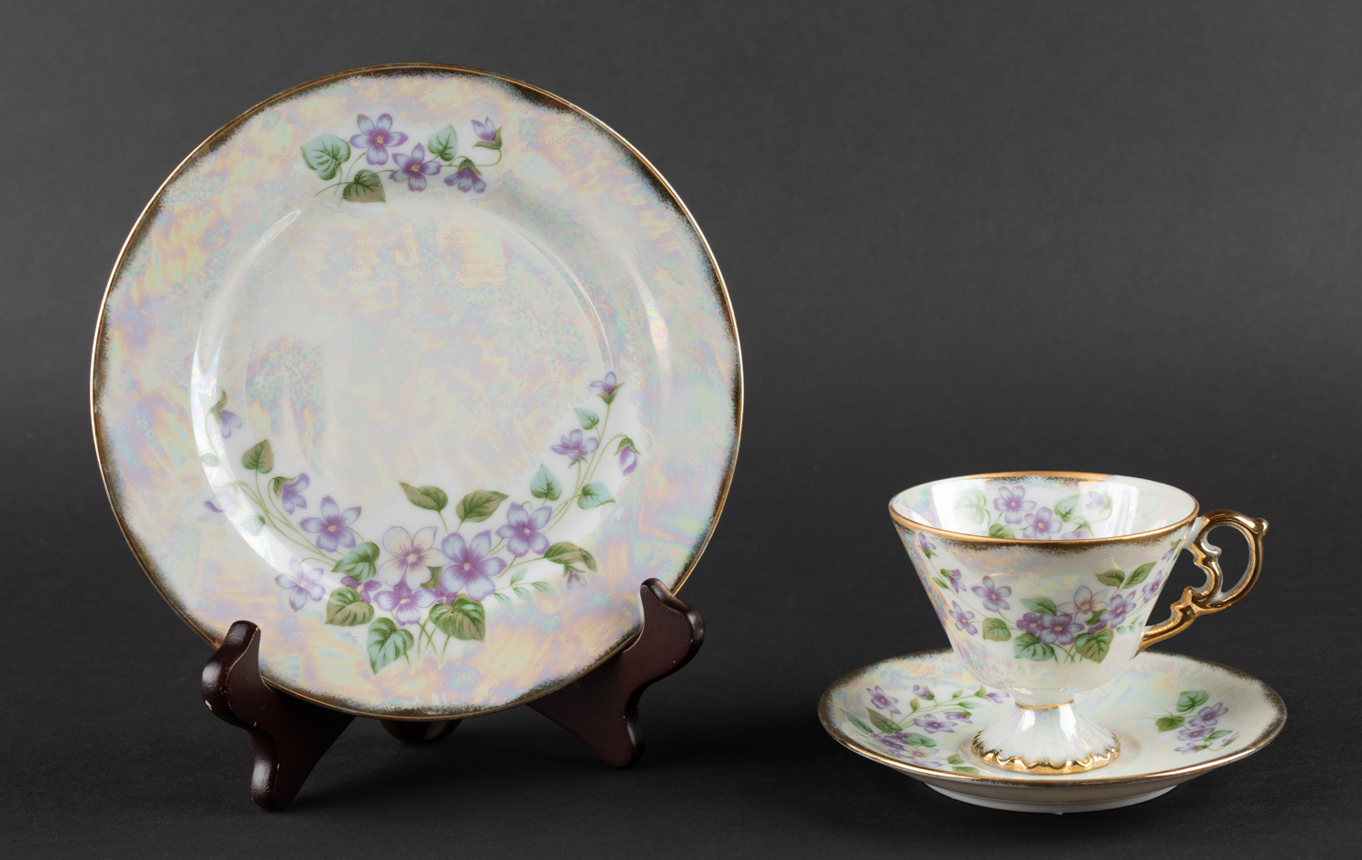 Mánaðarbolli með undirskál og hliðardiski - febrúar - Postulín - Ómerkt. Hliðardiskur 20 cm. 8 x 14 cm