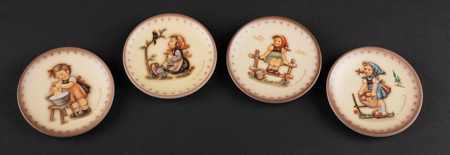 Fjórir litlir veggplattar - Postulín - #1978 1984 1991 1993. Merkt. 8 x 8 cm