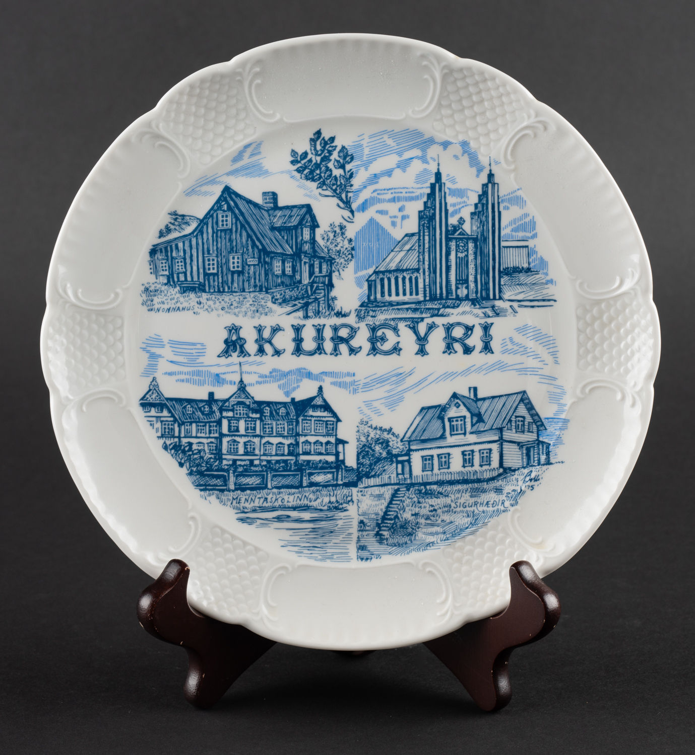 Akyreyri - Veggplatti - Postulín - Merkt. 22 x 22 cm