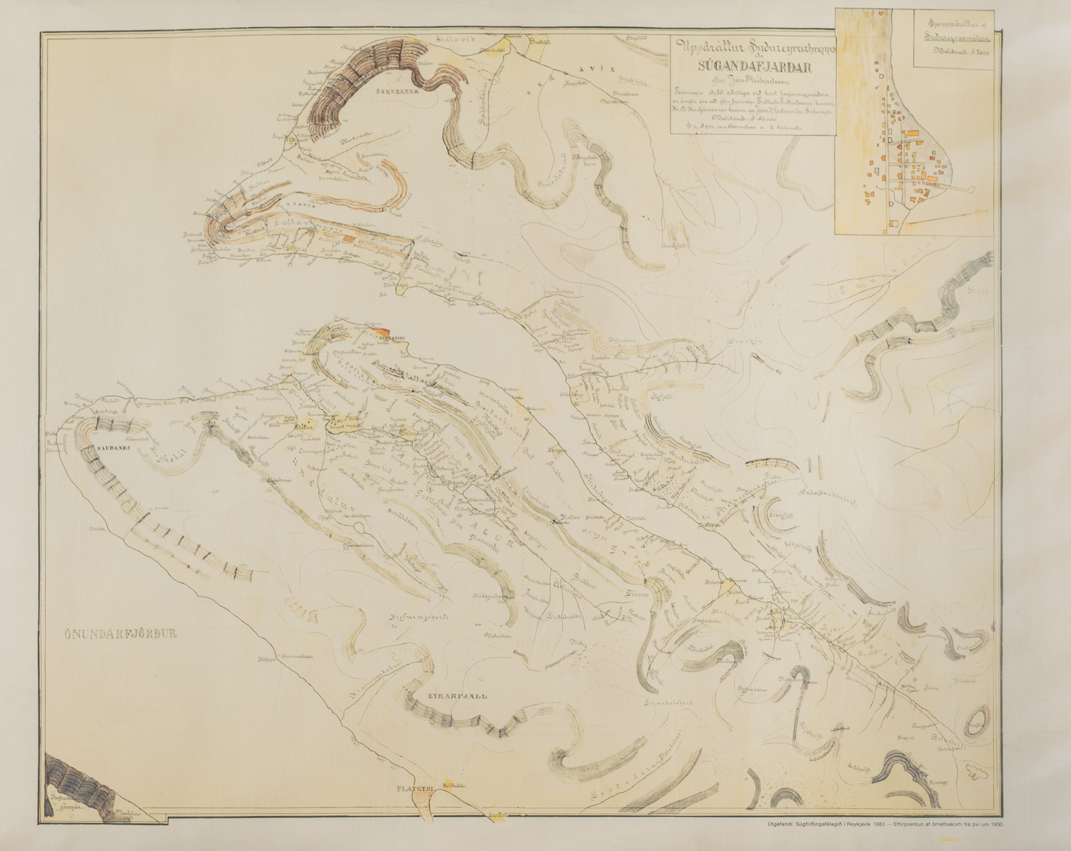 Kort af Súgandafirði - án ramma - Eftirprent - Merkt. 52 x 56 cm