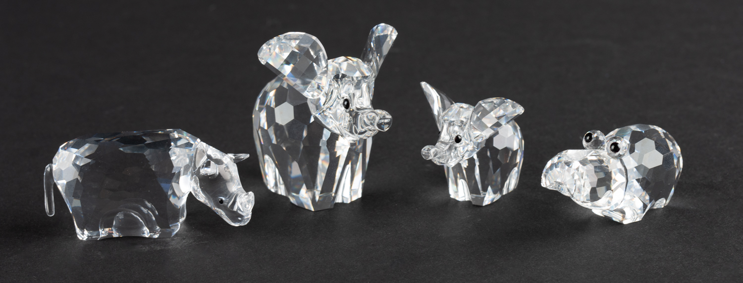 Safari - fjögur lítil dýr - Kristall - Ómerkt. Örlítið hvarnað úr fílsunga cm