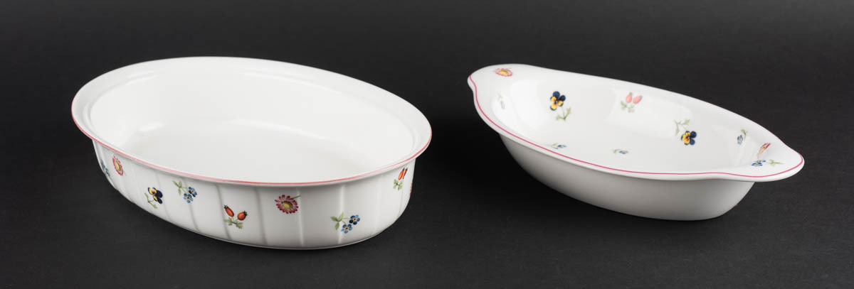 Petit Fleur - Tvö ílöng eldföst mót - Postulín - 5 x 30 x 16 cm. Merkt. 6 x 32 cm
