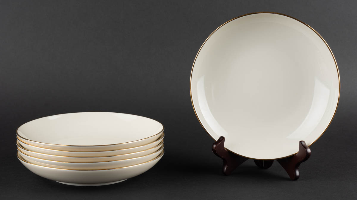 Sex djúpir diskar - Postulín - Merkt. 4 x 21 cm
