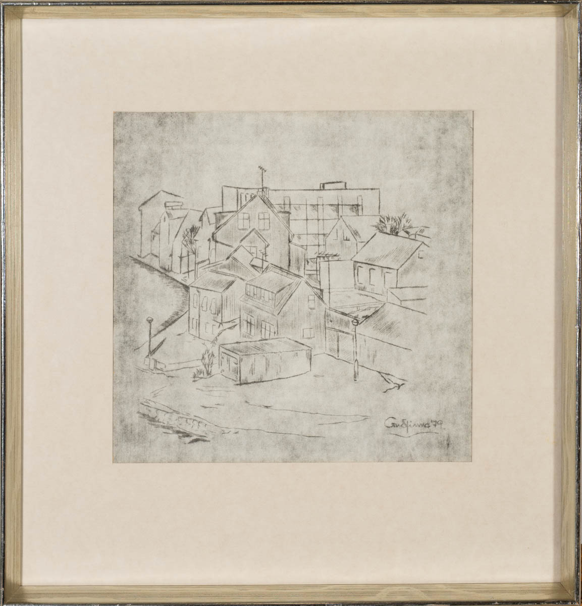 Húsþök - Teikning - 1979. Merkt Guðfinna. 27 x 28 cm