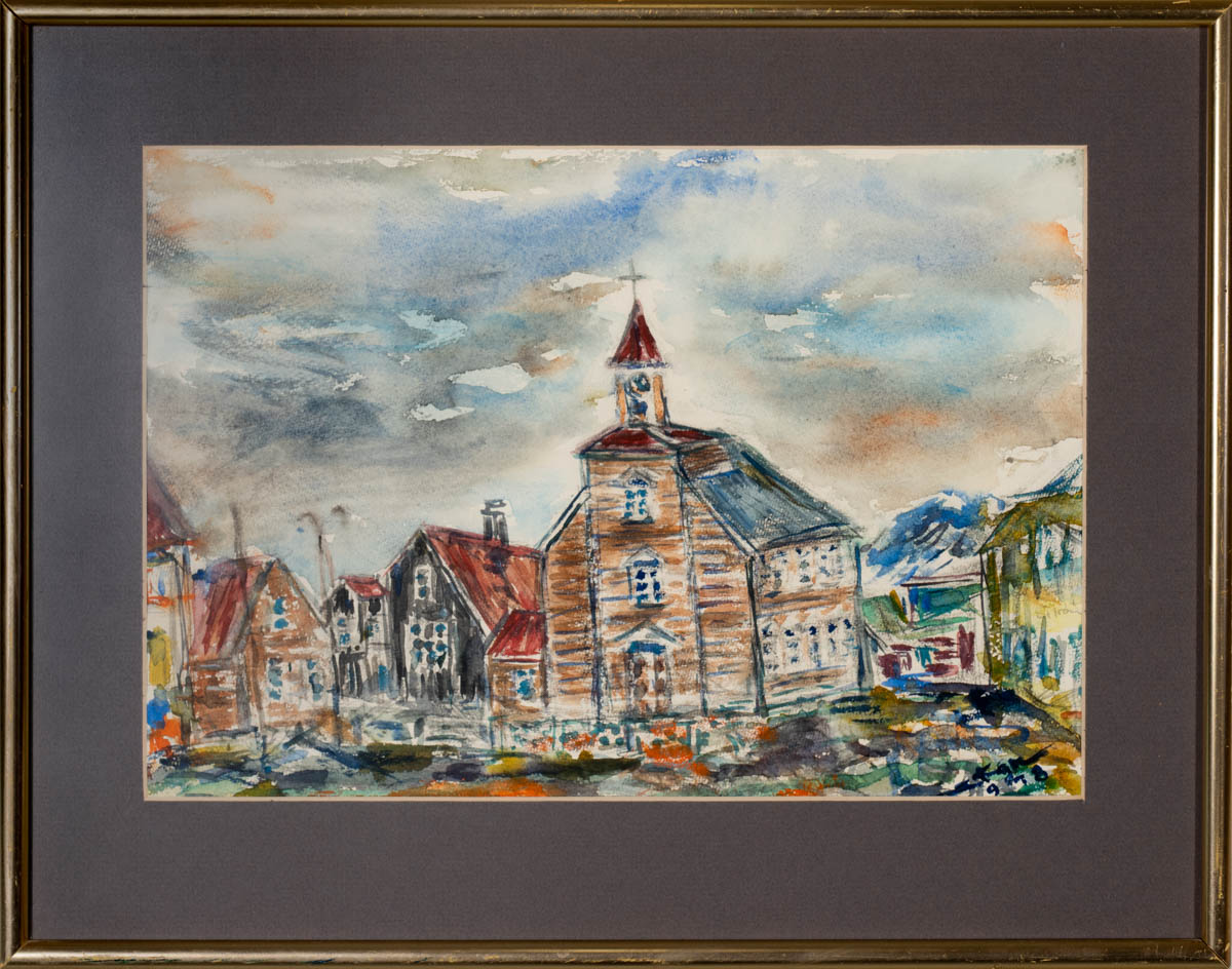 Kirkja - Vatnslitir - 1978. Merkt. 27 x 39 cm