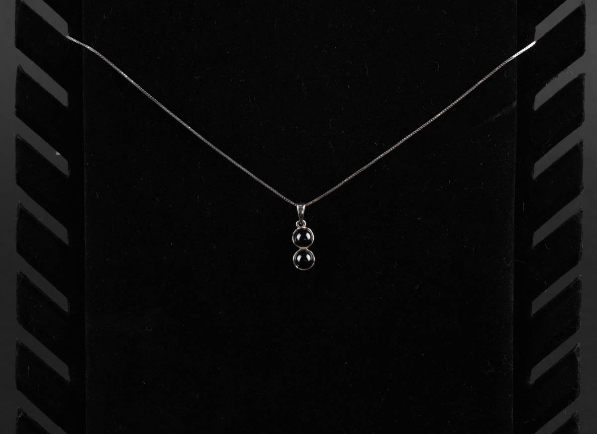 Silfurmen með hraunperlum - Silfur - 925s. 3.79 g. 45 cm