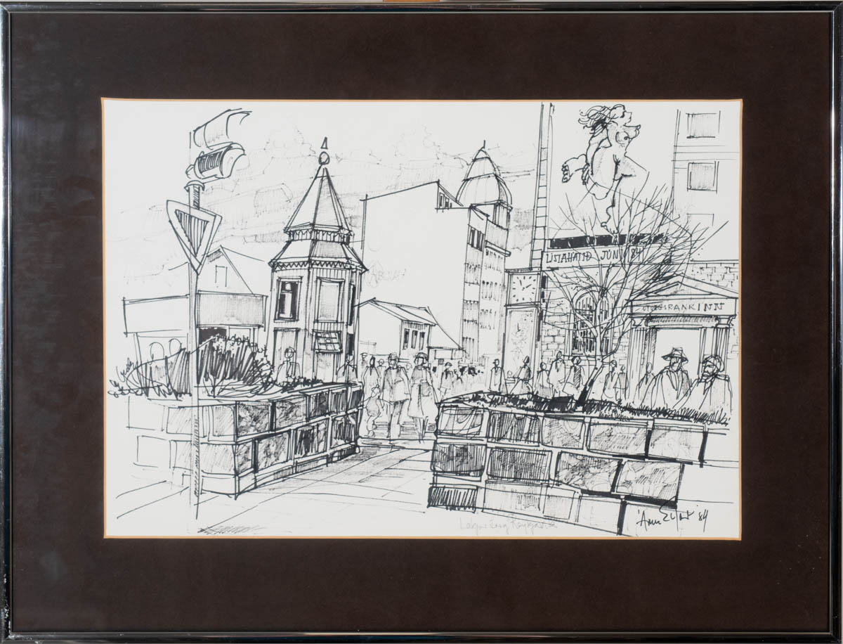 Lækjartorg I - Teikning - 1984. Merkt. 32 x 47 cm
