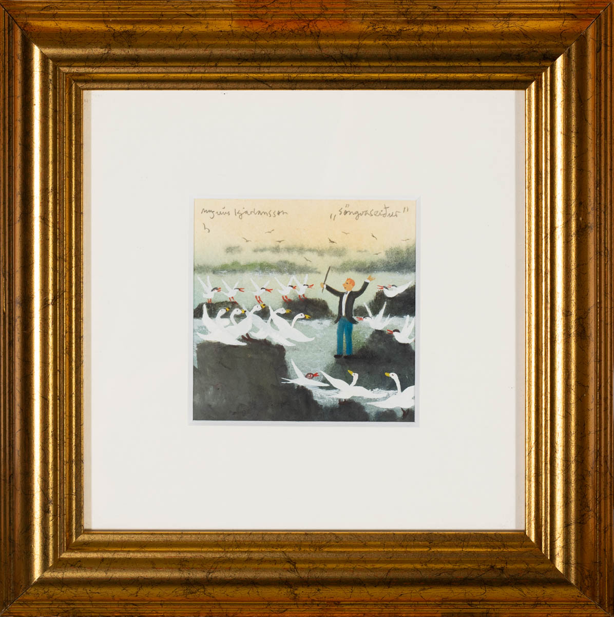 Söngvaseiður - Vatnslitir - Merkt. 8 x 8 cm