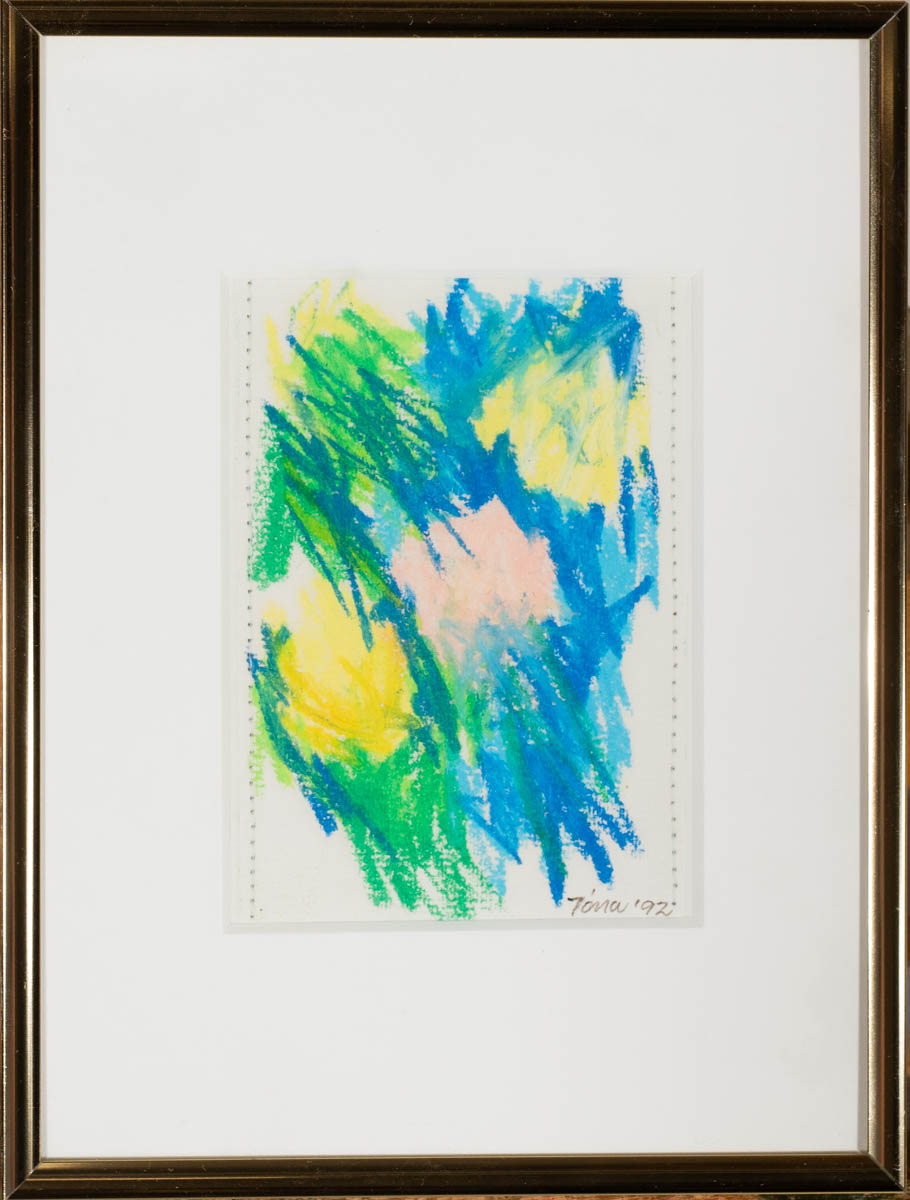 Án titils - Olíupastel - 1992. Merkt. 11 x 8 cm