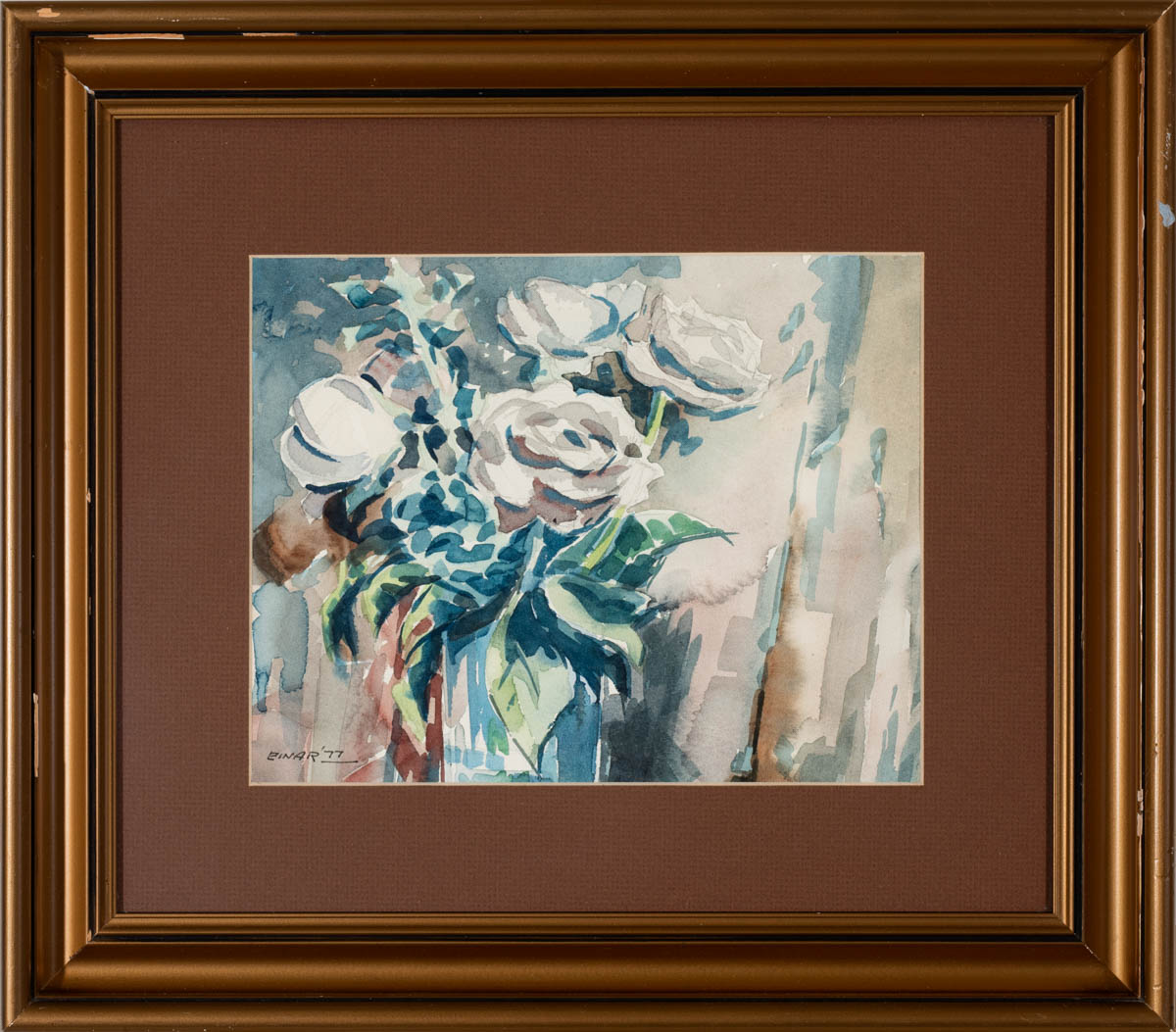 Rósavöndur - Vatnslitir - 1977. Merkt. 22 x 27 cm