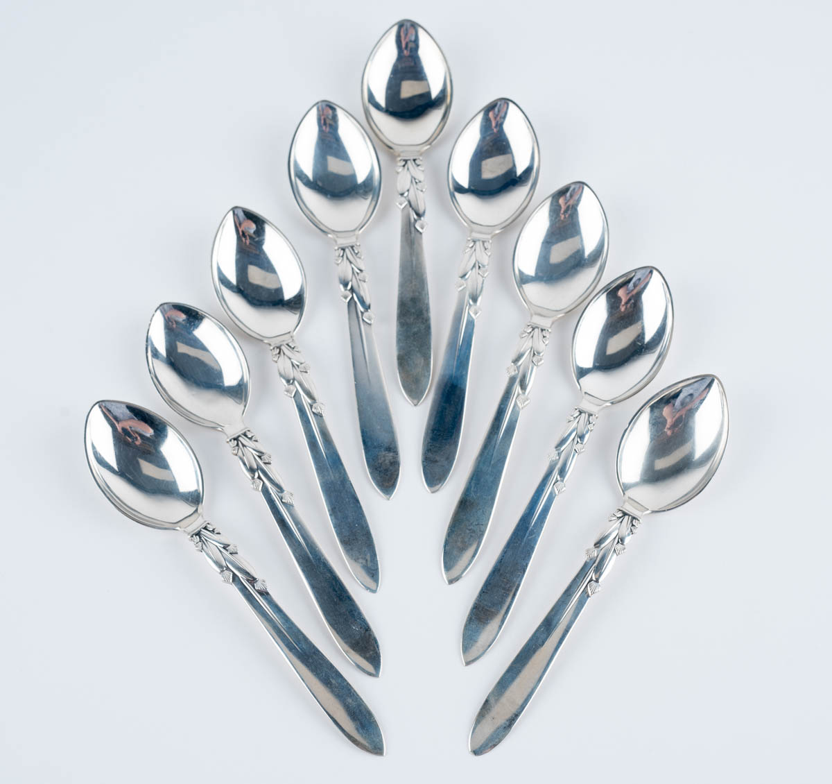 Kaktus - níu desertskeiðar - Silfur - 315G 925S. Merkt. 16 cm