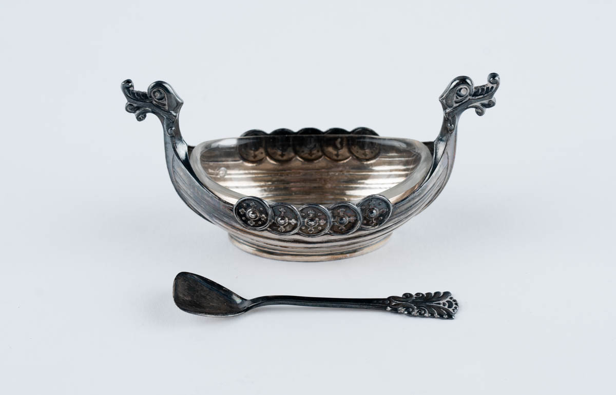 Víkingaskip - sykukar með skeið - Silfur - 925s. 18g. Norskt. Merkt. 4 x 8 cm