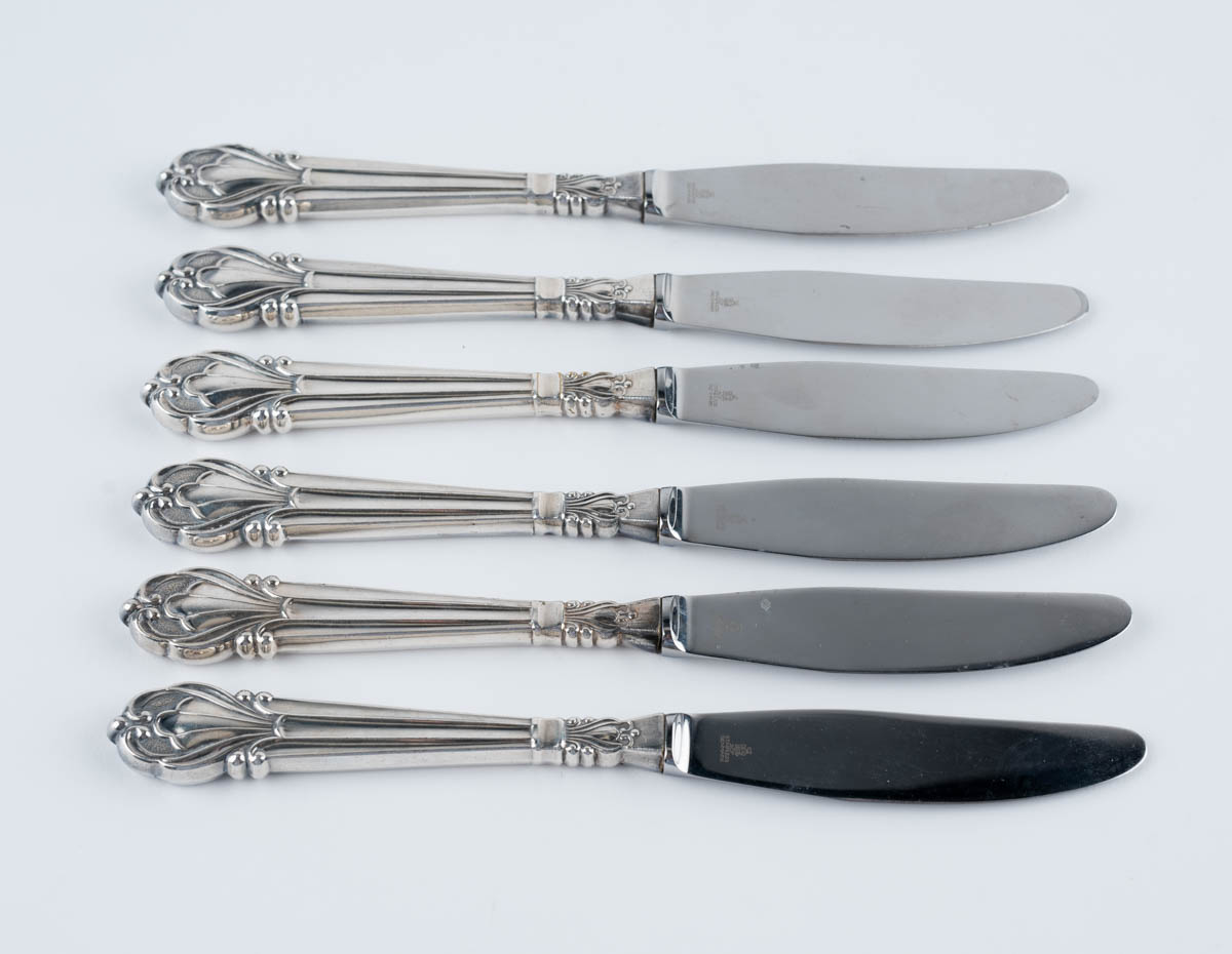 Sex mathnífar - SilfurPlett - 388g. Merkt. cm
