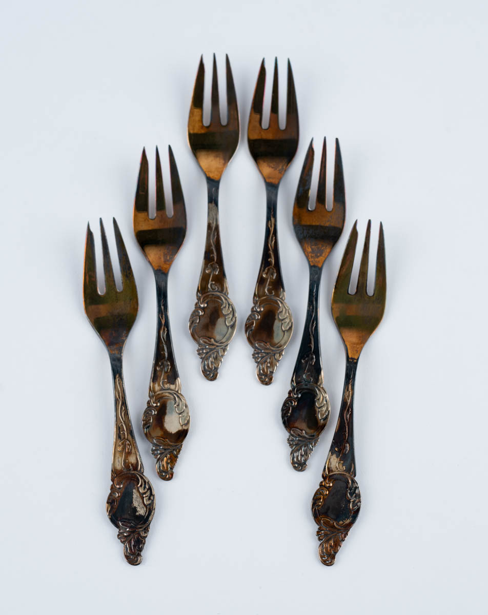 Renaissance - Sex desertgafflar - Silfur - 925s. 121g. Merkt. 13 cm