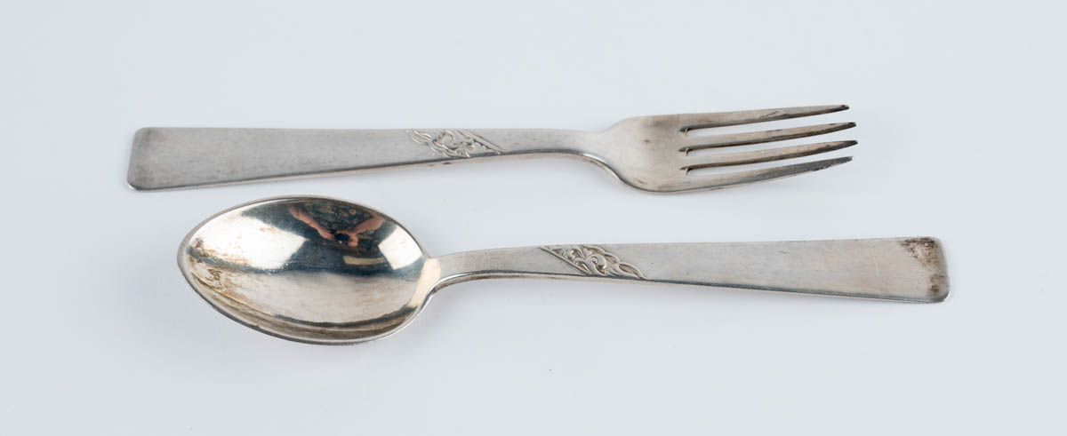 Matgaffall og skeið - Silfur - 830s. 96g. Merkt. 18 cm