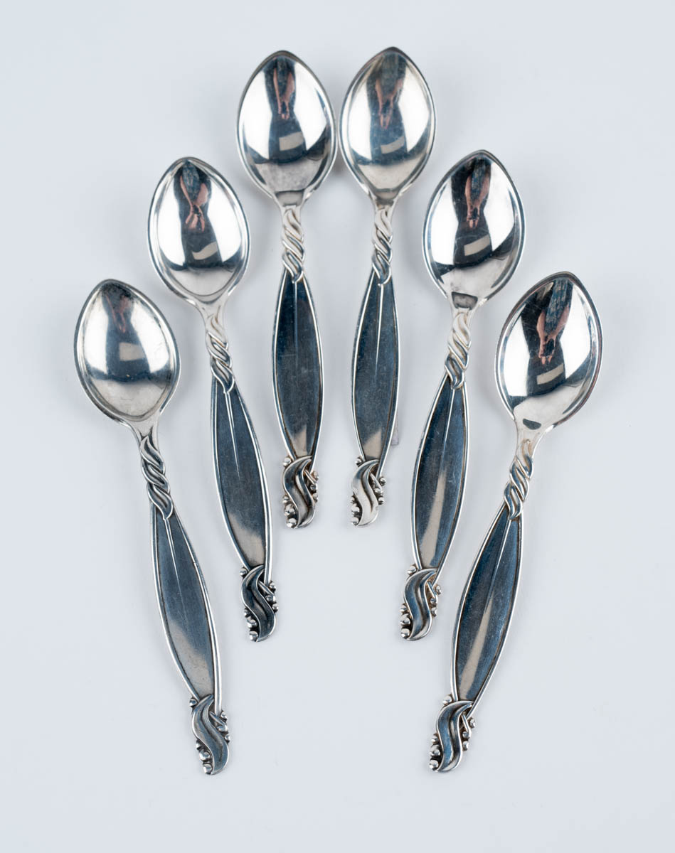 Vor - sex mokkaskeiðar - Silfur - 925s. 108g. Merkt. 12 cm