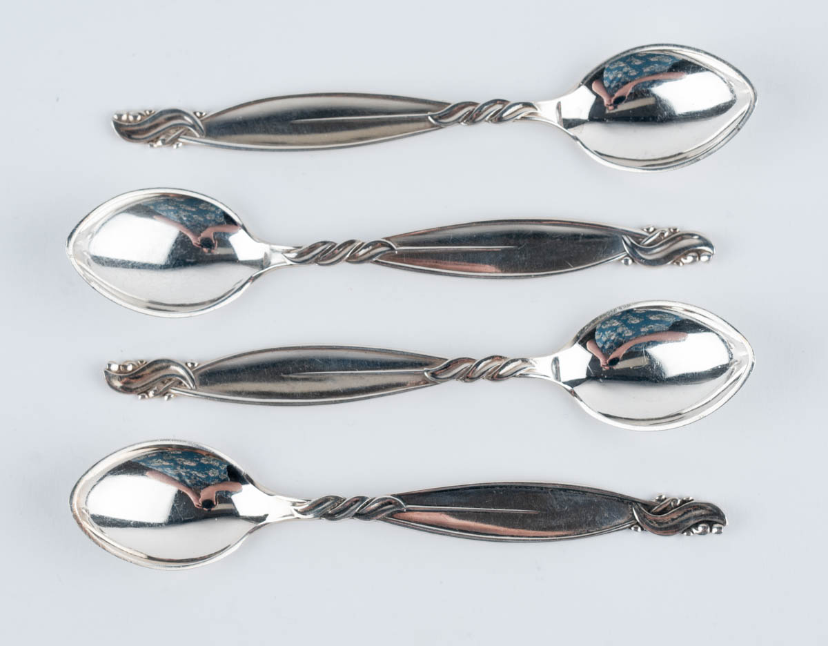 Vor - fjórar mokkaskeiðar - Silfur - 925s. 70g. Merkt. 12 cm