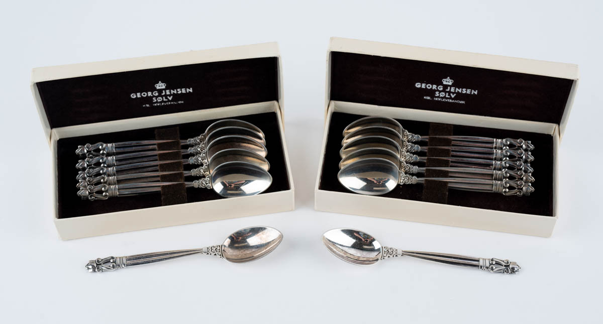 Akorn - 12 mokkaskeiðar - Silfur - Sterling. 250g. Merkt. 13 cm. cm