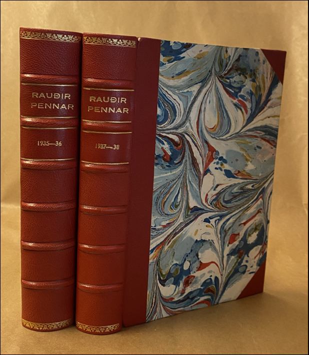 Rauðir pennar. Safn af sögum, ljóðum og ritgerðum eftir nýjustu innlenda og erlenda höfunda. Ritstjórn hefir annazt Kristinn E. Andrésson. - Tímarit. - Reykjavík. Félag byltingasinnaðra höfunda. Mál og menning, 1935-1938. cm