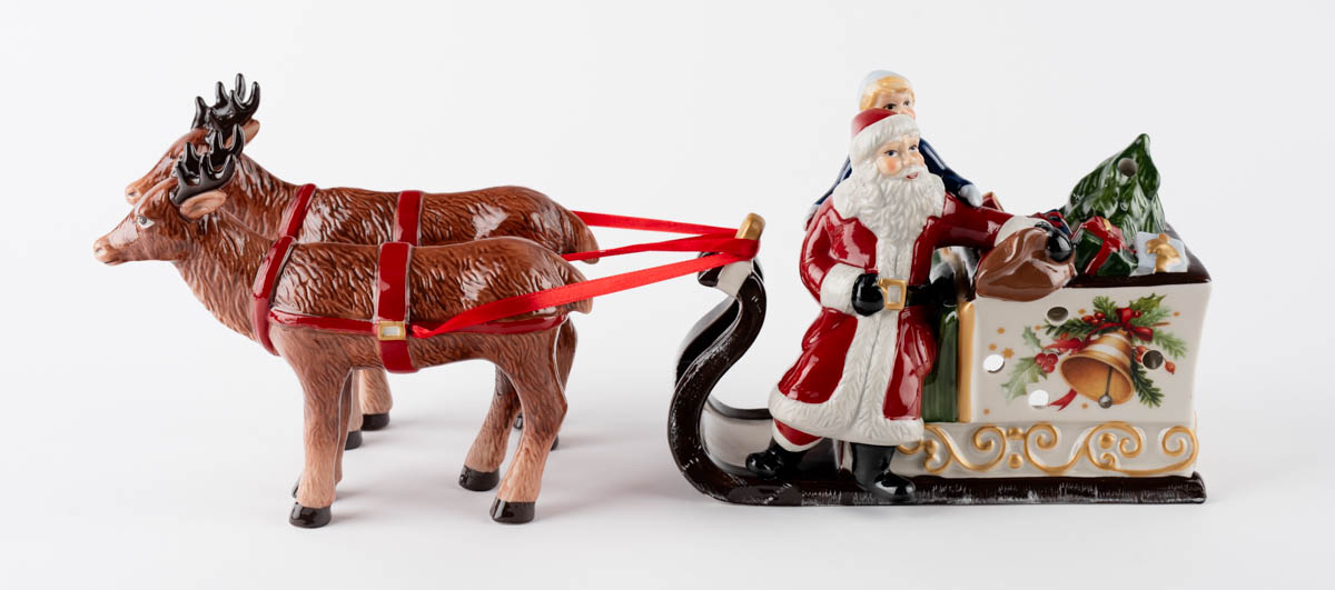 Jólsveinn á sleða - Postulín - Hreindýr 15 x 18 cm. Merkt undir. 16 x 20 cm