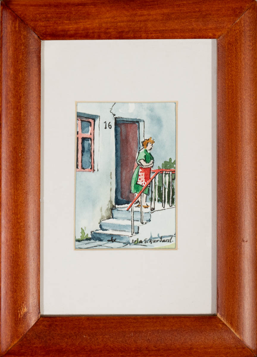 Frúin í 16 - Vatnslitir - Merkt. 8 x 5 cm