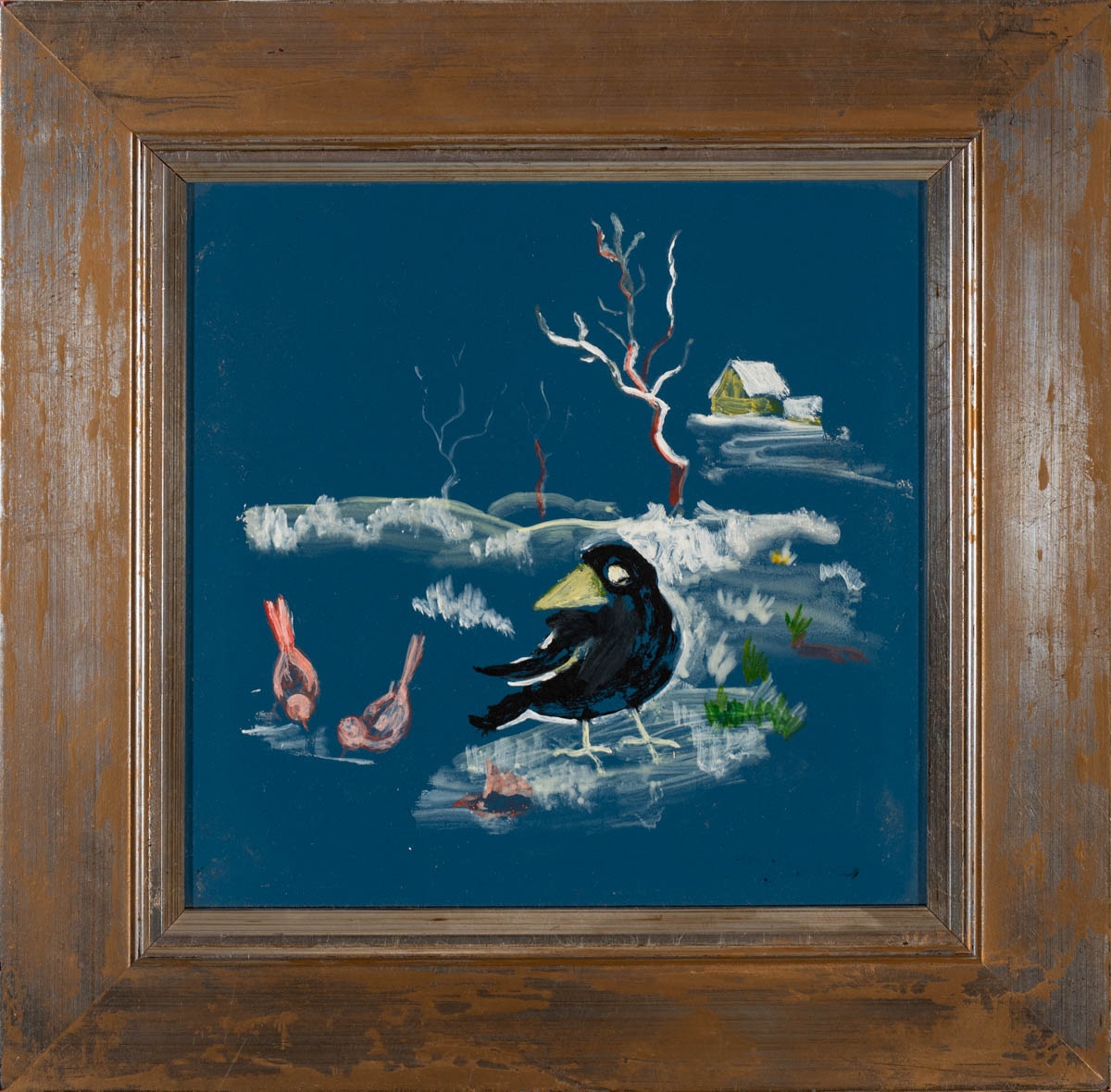 Fuglar um vetur - Blönduð Tækni - Ómerkt. 23 x 23 cm