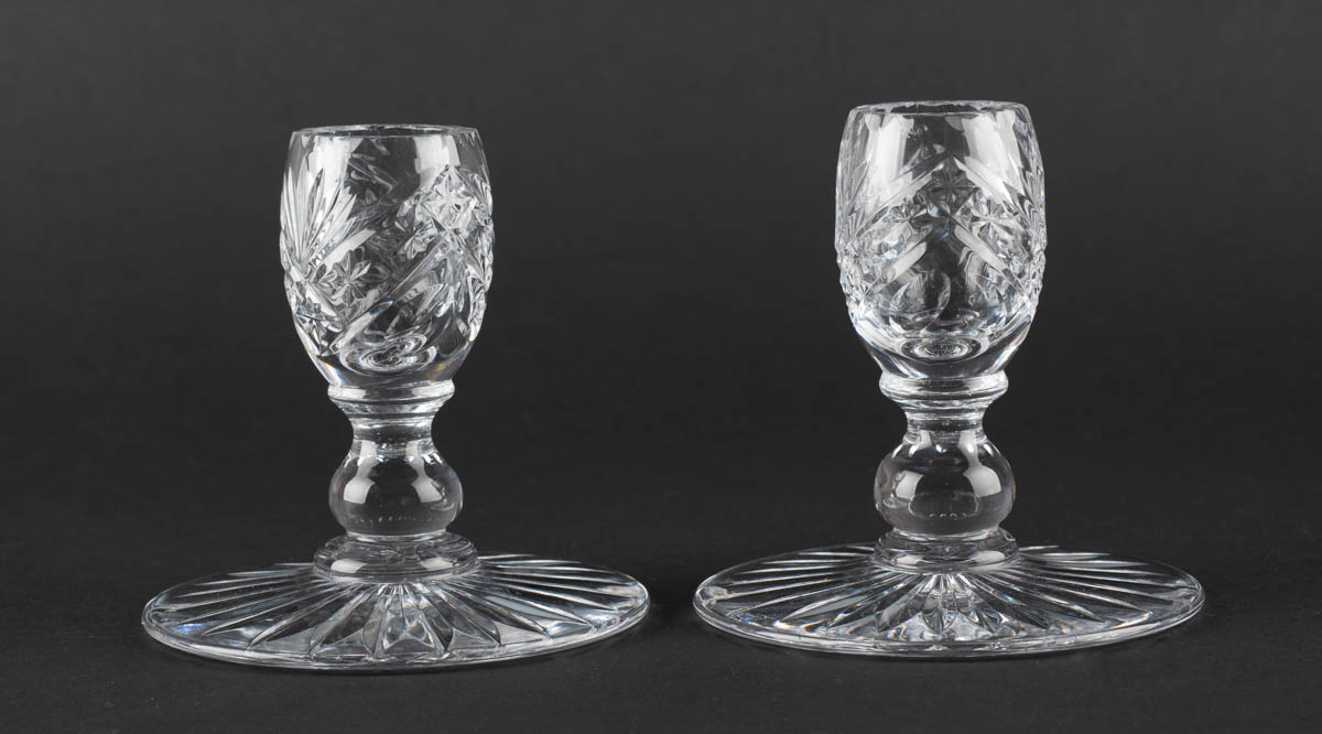 Tveir kertastjakar - Kristall - Ómerkt. 10 x 10 cm