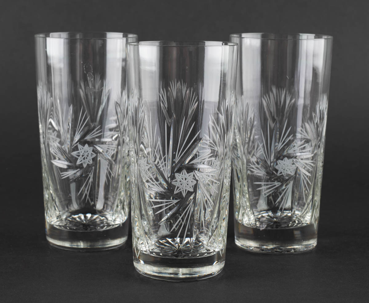 Halastjarnan - þrjú há glös - Kristall - Ómerkt. 18 x 7 cm
