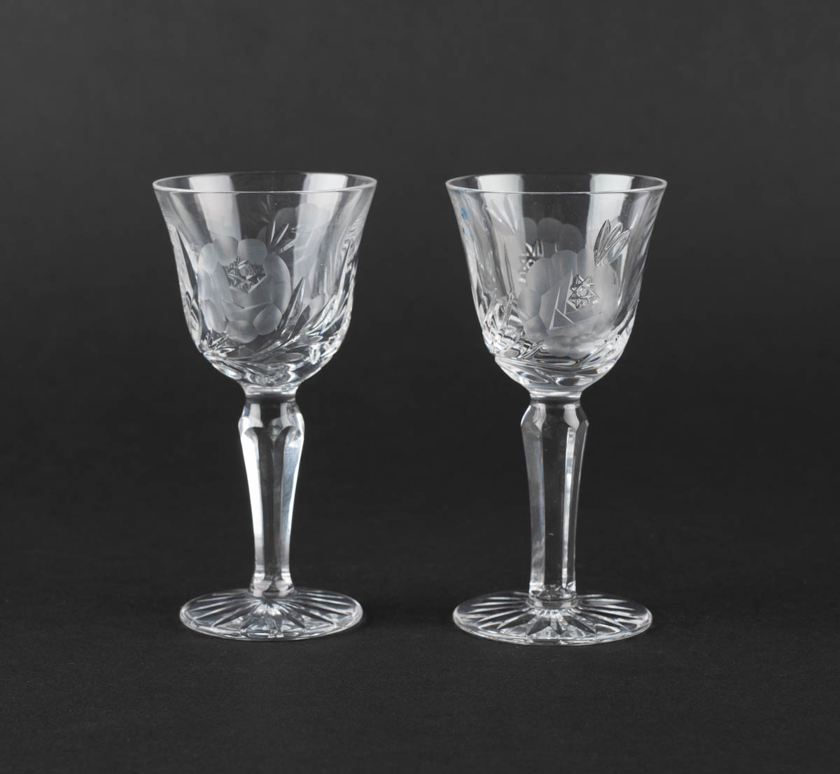 Matta rósin - tvö staupglös á fæti - Kristall - Ómerkt. 11 x 5 cm