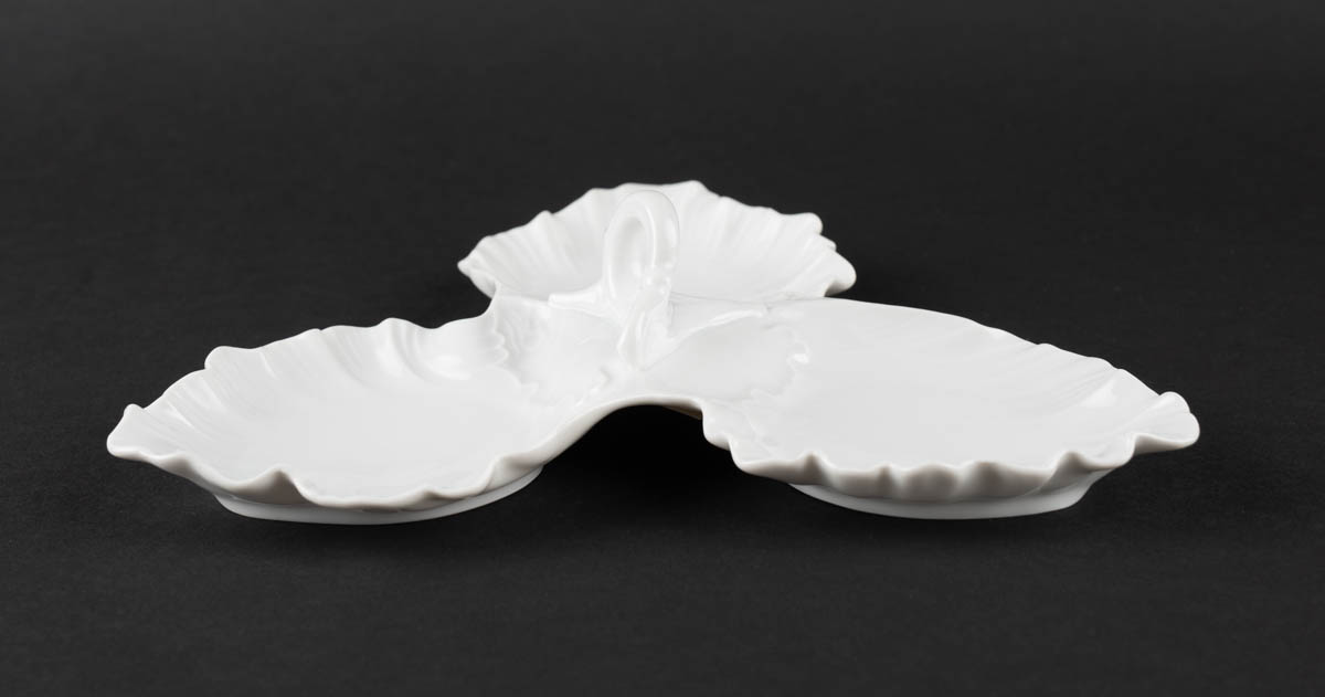 Þriggja arma laufabakki - Postulín - Merkt. 7 x 23 cm