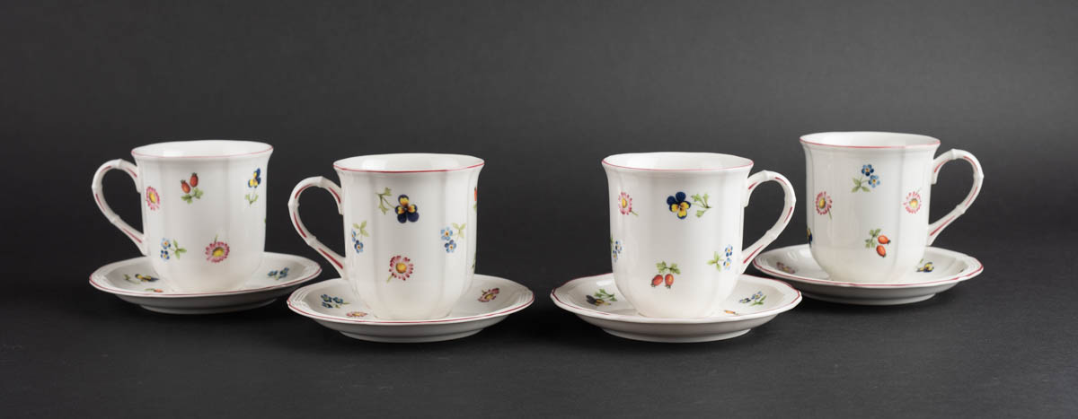 Petit Fleur - Fjórir kaffibollar og undirskálar - Postulín - us: 14. Merkt. 10 x 9 cm