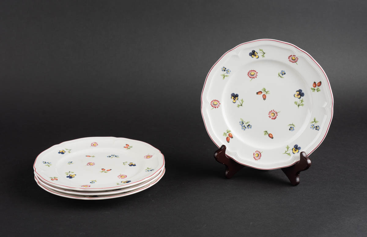Petit Fleur - Fjórir hliðardiskar - Postulín - Merkt. 17 x 0 cm