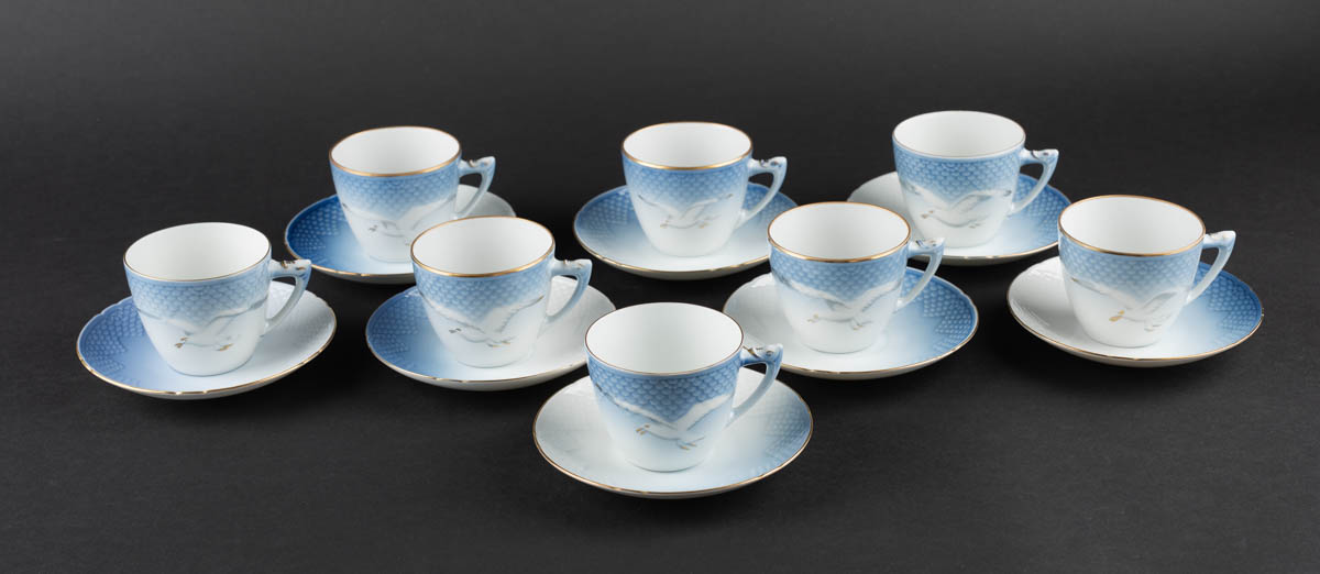 Átta kaffibollar og undirskálar - Mávastell - Postulín - Merkt. Bollar: 7 x 8 cm. us: 13 cm