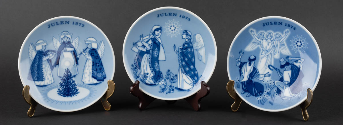 Julen 1972, 1973 og 1974 - Þrír plattar - Postulín - Merkt. 18 cm