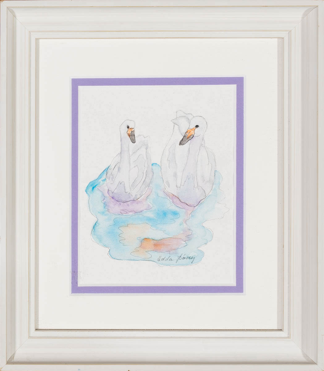 Tvær álftir - Vatnslitir - Merkt. 16 x 12 cm