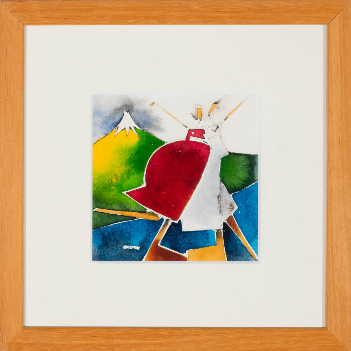 Undir jökli - Vatnslitir - Merkt. 13 x 13 cm