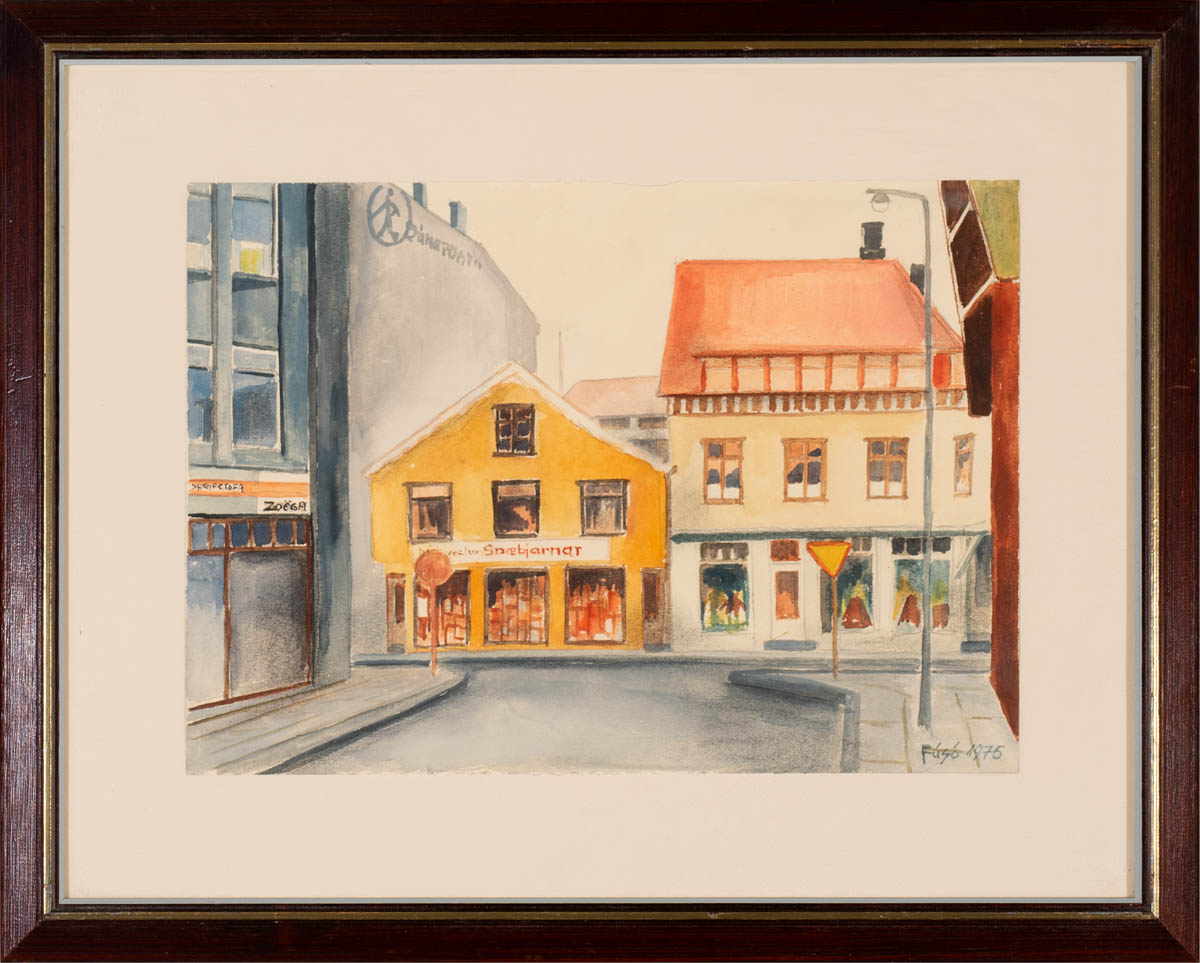 Horft í Hafnarstræti - Vatnslitir - 1975. Merkt. 24 x 34 cm