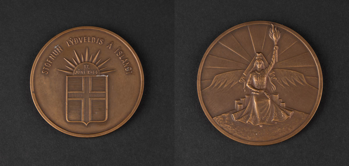 Minnispeningur - Stofnun lýðveldis á Íslandi, Fjallkona - Brons - Ómerkt. 7 x 7 cm