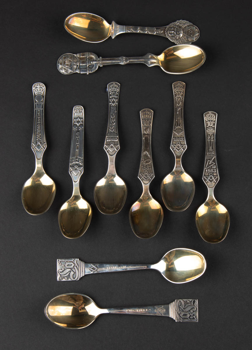 10 Frímúrara jólaskeiðar - Silfur - 925s. 332 g. Merkt. 13 cm