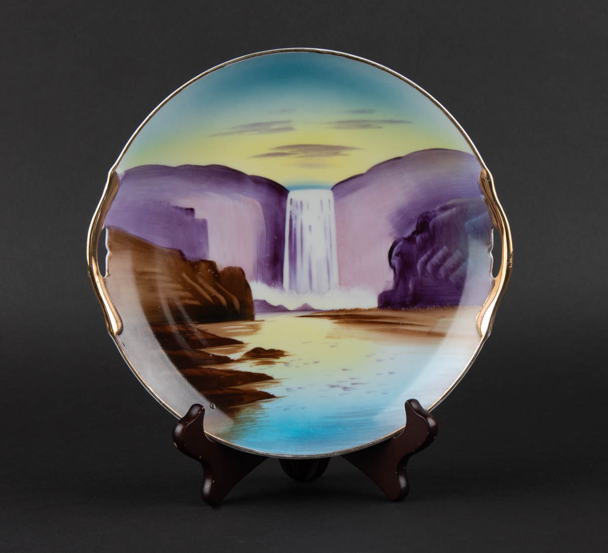 Skógafoss - handmálaður diskur/platti - Postulín - Merkt. 23 x 24 cm