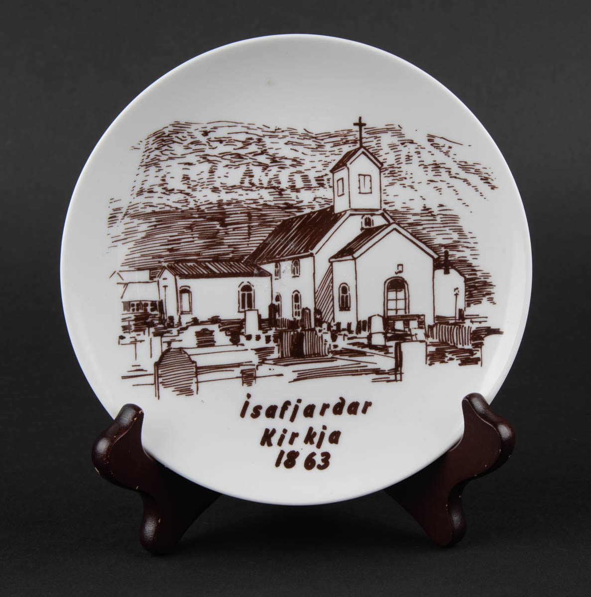 Ísafjarðarkirkja 1863 - Veggplatti - Postulín - Merkt. 17 x 17 cm
