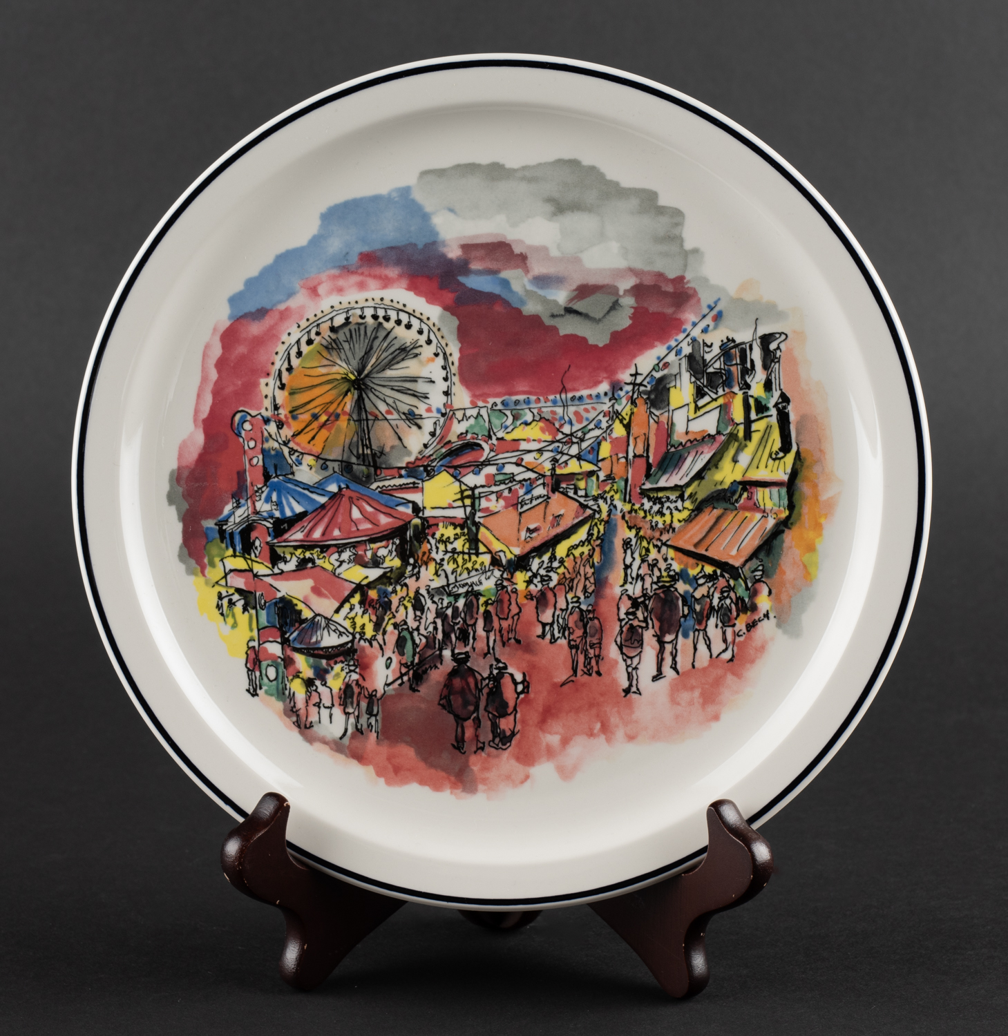 Hátíð í Lúxemborg - Veggplatti - Postulín - Merkt C. Bech. Merkt. 24 x 0 cm