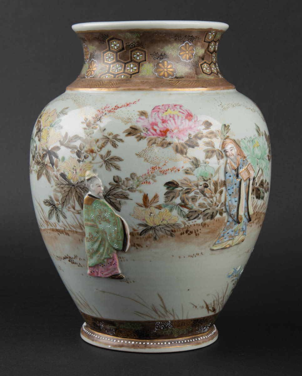 Japanskur vasi.19. aldar - relief painted. Sages and figurines - Postulín - Merkt. 25 x 18 cm