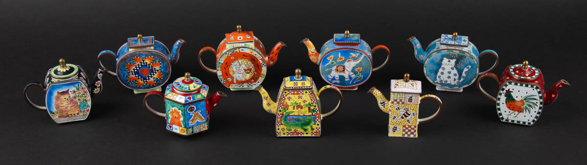 Níu handmálaðar tekönnur - - Postulín - Merkt. cm